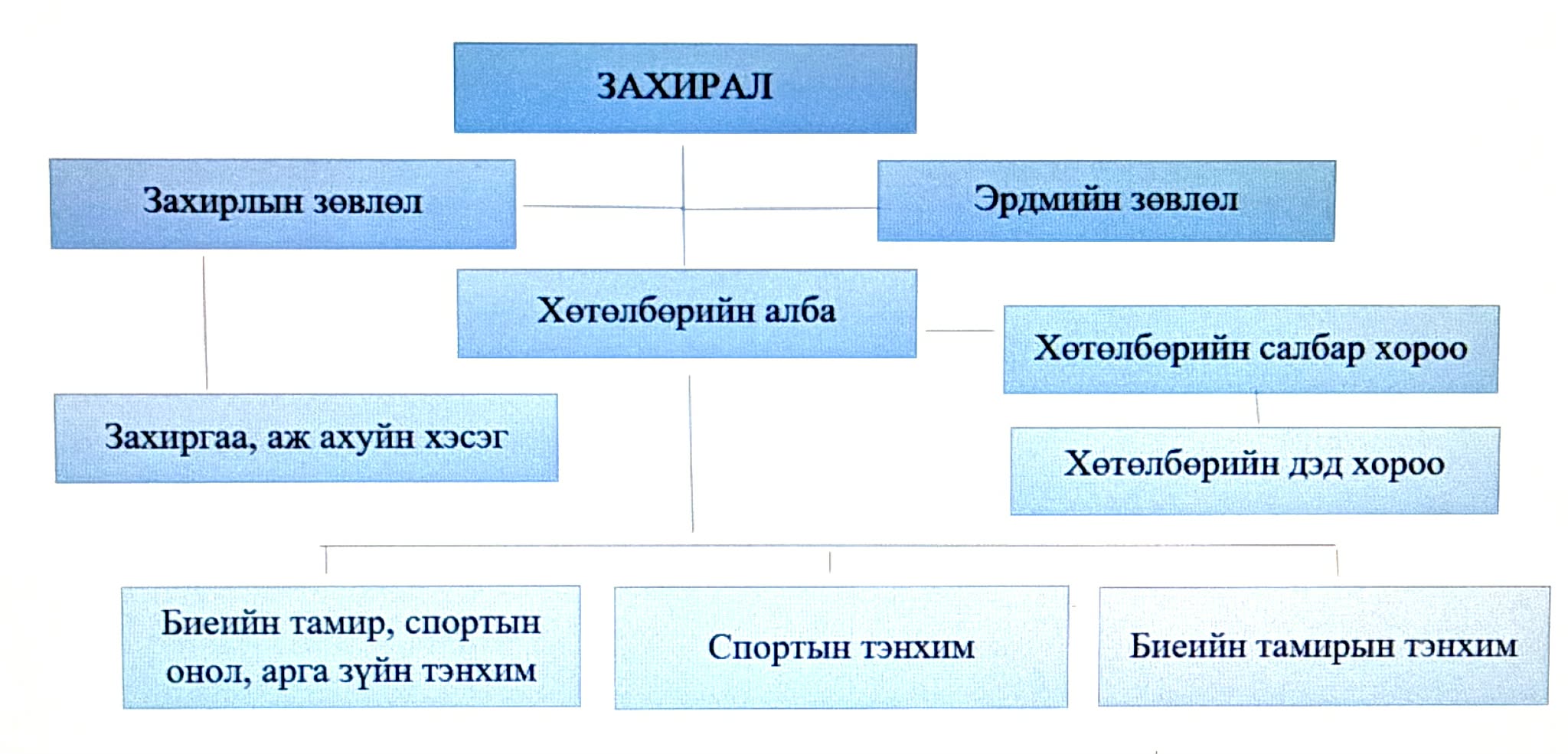 Сургуулийн захирлаар доктор (Ph.D) О.Болд-Эрдэнэ, захирлын нарийн бичгийн даргаар доктор (Ph.D) Д.Саулегүл, хөтөлбөрийн албаны дарга доктор (Ph.D) Г.Батцэцэг, нягтлан бодогч М.Наранцацрал, Мэргэжлийн спортын онол, арга зүйн тэнхимийн эрхлэгч доктор (Ph.D) Б.Нармандах, Бие бялдрын боловсрол, хөдөлгөөн заслын тэнхимийн эрхлэгч (Ph.D) Ш.Энхбүрэн, Спортын ганцаарчилсан төрлийн тэнхимийн эрхлэгч дэд профессор, (Ph.D) Б.Бат-Отгон, Спорт тоглоомын тэнхимийн эрхлэгч МУГТ Л.Нарантуяа нар ажиллаж байна. Сургуулийн эрдмийн зөвлөлийн гишүүдийг нийт багш нарын хамт олны нууц санал хураалтаар сонгон ажиллуулах журамтай бөгөөд 2017 оноос хойш 3 жил тутамд эрдмийн зөвлөлийн бүрэлдэхүүн шинэчлэгдэж ирсэн. Өдгөө Биеийн тамирын сургуулийн эрдмийн зөвлөлийн дарга нь захирал, доктор (Ph.D) О.Болд-Эрдэнэ, нарийн бичгийн дарга дэд профессор Б.Бат-Отгон, гишүүдэд: дэд профессор С.Туул, дэд профессор С.Ганцэцэг, доктор (Ph.D) Э.Нарантунгалаг, доктор (Ph.D) Б.Нармандах, доктор (Ph.D) Д.Цолмонтуяа, доктор (Ph.D) С. Бөхбат, доктор (Ph.D) Ш.Энхбүрэн нар багтаж байна.